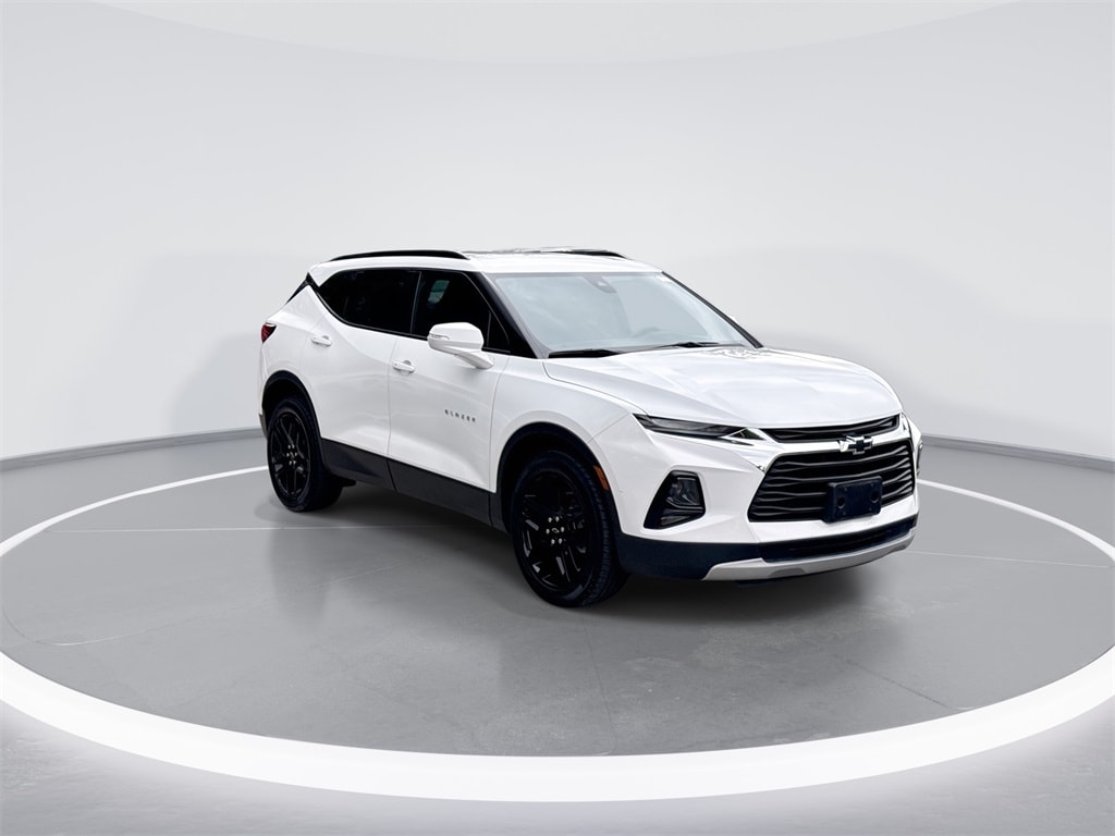 This Blazer is well equipped with Preferred Equipment Group 3LT (6-Way Power Front Passenger Seat Adjuster, Black Roof Rails, Heated Driver & Front Passenger Seats, Inside Rear-View Auto-Dimming Mirror, Lane Change Alert w/Side Blind Zone Alert, Outside Heated Power-Adjustable Body-Color Mirrors, Rear Cross Traffic Alert, Rear Park Assist w/Audible Warning, Rear Power Programmable Liftgate, Remote Start, and Universal Home Remote), 155 Amp Alternator, 170 Amp Alternator, 3.47 Final Drive Axle Ratio, 3.49 Final Drive Axle Ratio, 4-Wheel Disc Brakes, 6 Speakers, 6-Speaker Audio System Feature, ABS brakes, Air Conditioning, Alloy wheels, AM/FM radio: SiriusXM, Apple CarPlay/Android Auto, Auto High-beam Headlights, Auto-dimming door mirrors, Auto-dimming Rear-View mirror, Automatic temperature control, Brake assist, Bumpers: body-color, Child-Seat-Sensing Airbag, Compass, Delay-off headlights, Driver door bin, Driver vanity mirror, Dual front impact airbags, Dual front side impact airbags, Electronic Stability Control, Emergency communication system: OnStar and Chevrolet connected services capable, Exterior Parking Camera Rear, Four wheel independent suspension, Front anti-roll bar, Front Bucket Seats, Front Center Armrest, Front dual zone A/C, Front reading lights, Fully automatic headlights, Garage door transmitter, Heated door mirrors, Heated front seats, High-Intensity Discharge Headlights, Illuminated entry, Knee airbag, Leather Shift Knob, Low tire pressure warning, Not Equipped w/Driver & Fr Passenger Heated Seats, Not Equipped w/Rear Park Assist, Occupant sensing airbag, Outside temperature display, Overhead airbag, Overhead console, Panic alarm, Passenger door bin, Passenger vanity mirror, Perforated Leather-Appointed Seat Trim, Power door mirrors, Power driver seat, Power Liftgate, Power passenger seat, Power steering, Power windows, Radio data system, Radio: Chevrolet Infotainment 3 System, Rear anti-roll bar, Rear reading lights, Rear seat center armrest, Rear window defroster, Rear window wiper, Remote keyless entry, Ride & Handling Suspension, Security system, SiriusXM Radio, Speed control, Speed-sensing steering, Split folding rear seat, Spoiler, Steering wheel mounted audio controls, Tachometer, Telescoping steering wheel, Tilt steering wheel, Traction control, Trip computer, Turn signal indicator mirrors, Variably intermittent wipers, Voltmeter, Wheels: 18" Bright Silver Aluminum, and Wheels: 20" Gloss Black Aluminum.