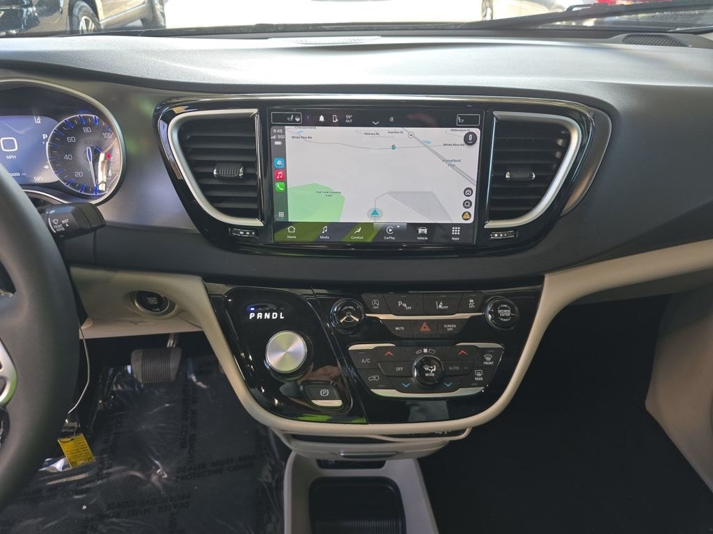 This Pacifica is well equipped with Quick Order Package 27L, 10.1" Touchscreen Display, 17" x 7.0" Aluminum Wheels, 3.25 Axle Ratio, 3rd row seats: split-bench, 4-Wheel Disc Brakes, 6 Speakers, ABS brakes, Air Conditioning, Alloy wheels, AM/FM radio: SiriusXM, Apple CarPlay, Apple CarPlay/Android Auto, Automatic temperature control, Black Seats, Brake assist, Bumpers: body-color, Caprice Leatherette Bucket Seats, Compass, Delay-off headlights, Disassociated Touchscreen Display, Driver door bin, Driver vanity mirror, Driver's Seat Mounted Armrest, Dual front impact airbags, Dual front side impact airbags, Electronic Stability Control, Four wheel independent suspension, Front anti-roll bar, Front Bucket Seats, Front dual zone A/C, Front fog lights, Front reading lights, Fully automatic headlights, Google Android Auto, GPS Antenna Input, Heated door mirrors, Heated front seats, Heated steering wheel, Illuminated entry, Integrated Active Noise Cancellation, Integrated Center Stack Radio, Knee airbag, Low tire pressure warning, Manufacturer's Statement of Origin, Memory seat, Occupant sensing airbag, Outside temperature display, Overhead airbag, Overhead console, Panic alarm, ParkView Rear Back-Up Camera, Passenger door bin, Passenger seat mounted armrest, Passenger vanity mirror, Power door mirrors, Power driver seat, Power Liftgate, Power steering, Power windows, Radio data system, Radio: Uconnect 5 w/10.1" Display, Rain sensing wipers, Rear air conditioning, Rear reading lights, Rear window defroster, Rear window wiper, Reclining 3rd row seat, Remote keyless entry, Security system, Speed control, Split folding rear seat, Spoiler, Steering wheel mounted audio controls, Tachometer, Telescoping steering wheel, Tilt steering wheel, Touring Suspension, Traction control, Trip computer, Turn signal indicator mirrors, USB Host Flip, Variably intermittent wipers, and Voltmeter.