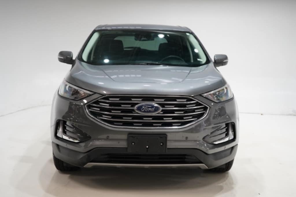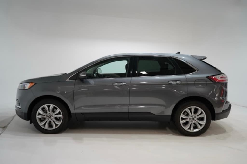 This Edge is well equipped with AWD, 12 Speakers, 3.80 Axle Ratio, 4-Wheel Disc Brakes, ABS brakes, ActiveX-Trimmed Heated Sport Bucket Seats, Air Conditioning, Alloy wheels, AM/FM radio: SiriusXM with 360L, Auto High-beam Headlights, Auto-dimming Rear-View mirror, Automatic temperature control, Brake assist, Bumpers: body-color, Compass, Delay-off headlights, Driver door bin, Driver vanity mirror, Dual front impact airbags, Dual front side impact airbags, Electronic Stability Control, Emergency communication system: SYNC 4 911 Assist, FordPass Connect, Four wheel independent suspension, Front anti-roll bar, Front Bucket Seats, Front Center Armrest w/Storage, Front dual zone A/C, Front fog lights, Front reading lights, Fully automatic headlights, Garage door transmitter, Heated door mirrors, Heated front seats, Heated steering wheel, Illuminated entry, Knee airbag, Leather steering wheel, Low tire pressure warning, Memory seat, Occupant sensing airbag, Outside temperature display, Overhead airbag, Overhead console, Panic alarm, Passenger door bin, Passenger vanity mirror, Power door mirrors, Power driver seat, Power Liftgate, Power passenger seat, Power steering, Power windows, Radio: B&O Sound System by Bang & Olufsen, Rain sensing wipers, Rear anti-roll bar, Rear reading lights, Rear seat center armrest, Rear window defroster, Rear window wiper, Remote keyless entry, Security system, SiriusXM w/360L, Speed control, Speed-Sensitive Wipers, Split folding rear seat, Spoiler, Steering wheel mounted audio controls, SYNC 4A w/Enhanced Voice Recognition, Tachometer, Telescoping steering wheel, Tilt steering wheel, Traction control, Trip computer, Turn signal indicator mirrors, Variably intermittent wipers, and Wheels: 19" Luster Nickel-Painted Aluminum.