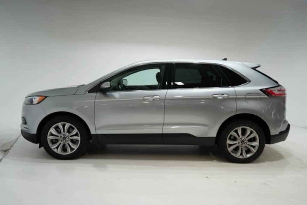 This Edge is well equipped with AWD, 12 Speakers, 3.80 Axle Ratio, 4-Wheel Disc Brakes, ABS brakes, ActiveX-Trimmed Heated Sport Bucket Seats, Air Conditioning, Alloy wheels, AM/FM radio: SiriusXM with 360L, Auto High-beam Headlights, Auto-dimming Rear-View mirror, Automatic temperature control, Brake assist, Bumpers: body-color, Compass, Delay-off headlights, Driver door bin, Driver vanity mirror, Dual front impact airbags, Dual front side impact airbags, Electronic Stability Control, Emergency communication system: SYNC 4 911 Assist, FordPass Connect, Four wheel independent suspension, Front anti-roll bar, Front Bucket Seats, Front Center Armrest w/Storage, Front dual zone A/C, Front fog lights, Front reading lights, Fully automatic headlights, Garage door transmitter, Heated door mirrors, Heated front seats, Heated steering wheel, Illuminated entry, Knee airbag, Leather steering wheel, Low tire pressure warning, Memory seat, Occupant sensing airbag, Outside temperature display, Overhead airbag, Overhead console, Panic alarm, Passenger door bin, Passenger vanity mirror, Power door mirrors, Power driver seat, Power Liftgate, Power passenger seat, Power steering, Power windows, Radio: B&O Sound System by Bang & Olufsen, Rain sensing wipers, Rear anti-roll bar, Rear reading lights, Rear seat center armrest, Rear window defroster, Rear window wiper, Remote keyless entry, Security system, SiriusXM w/360L, Speed control, Speed-Sensitive Wipers, Split folding rear seat, Spoiler, Steering wheel mounted audio controls, SYNC 4A w/Enhanced Voice Recognition, Tachometer, Telescoping steering wheel, Tilt steering wheel, Traction control, Trip computer, Turn signal indicator mirrors, Variably intermittent wipers, and Wheels: 19" Luster Nickel-Painted Aluminum.