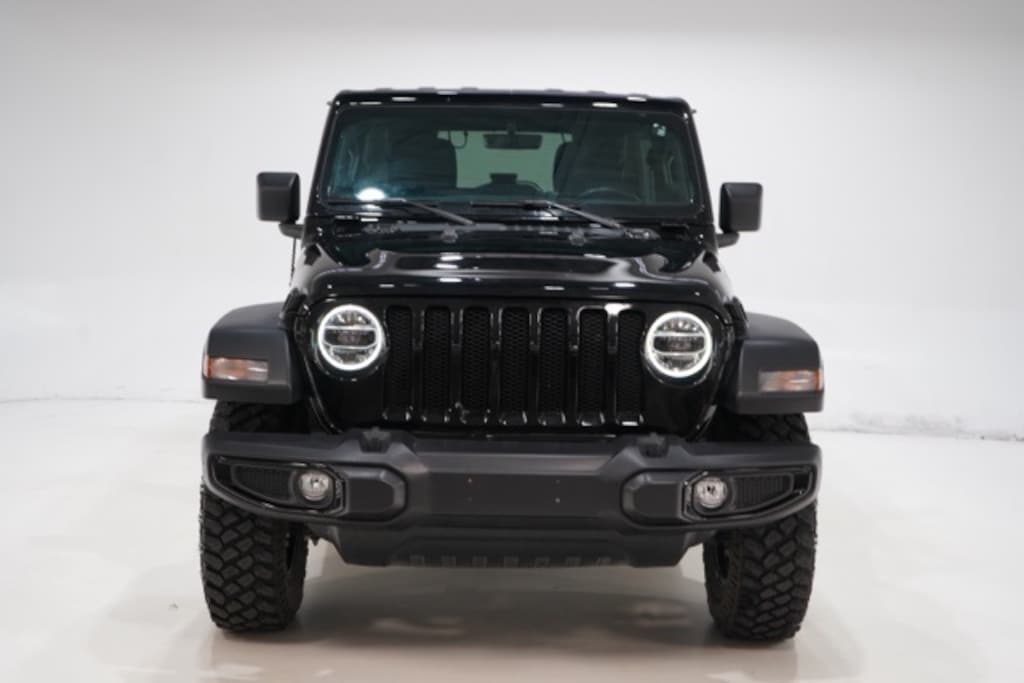 This Wrangler is well equipped with LED Headlamp & Fog Lamp Group (Front LED Fog Lamps and LED Premium Reflector Headlamps), Quick Order Package 25W Willys (DISC) (4-Wheel Drive Swing Gate Decal, Anti-Spin Differential Rear Axle, Automatic Headlamps, Black Grille, Black Trail Rated Badge, Deep Tint Sunscreen Windows, Front 1-Touch Down Power Windows, Leather Wrapped Steering Wheel, Matte Black Jeep Badge, Mold In Color Bumper w/Gloss Black, MOPAR All-Weather Floor Mats (DISC), Power Heated Mirrors, Remote Keyless Entry, Security Alarm, Speed Sensitive Power Locks, Sun Visors w/Illuminated Vanity Mirrors, Wheels: 17" x 7.5" Moab Black Aluminum, Willys, Willys Hood Decal, and Wrangler Decal), Technology Group (7.0" Touchscreen Display, Air Conditioning w/Auto Temperature Control, Air Filtering, Apple CarPlay, Cluster 7.0" TFT Color Display, For More Info, Call 800-643-2112, Google Android Auto, GPS Antenna Input, Integrated Center Stack Radio, Radio: Uconnect 4 w/7" Display, SiriusXM Radio Service, SiriusXM Satellite Radio, and USB Host Flip), 8.4" Radio & Premium Audio Group (Alpine Premium Audio System, Auto-Dimming Rear-View Mirror, and Emergency/Assistance Call), 3.45 Rear Axle Ratio, 4-Wheel Disc Brakes, 8 Speakers, ABS brakes, Air Conditioning, AM/FM radio, Aux Battery, Black 3-Piece Hard Top, Brake assist, Cloth Low-Back Bucket Seats, Compass, Delay-off headlights, Driver door bin, Driver vanity mirror, Dual front impact airbags, Dual front side impact airbags, Electronic Stability Control, Freedom Panel Storage Bag, Front anti-roll bar, Front Bucket Seats, Front Center Armrest w/Storage, Front fog lights, Front reading lights, Integrated roll-over protection, Low tire pressure warning, No Soft Top, Non-Lock Fuel Cap w/o Discriminator, Normal Duty Suspension, Occupant sensing airbag, Outside temperature display, ParkView Rear Back-Up Camera, Passenger door bin, Passenger vanity mirror, Power steering, Radio data system, Radio: Uconnect 3 w/5" Display, Radio: Uconnect 4C Nav w/8.4" Display (DISC), Rear anti-roll bar, Rear reading lights, Rear Window Defroster, Rear Window Wiper/Washer, Speed control, Split folding rear seat, Steering wheel mounted audio controls, Stop-Start Dual Battery System, Tachometer, Telescoping steering wheel, Tilt steering wheel, Traction control, Trip computer, Variably intermittent wipers, and Wheels: 17" x 7.5" Black Steel Styled.