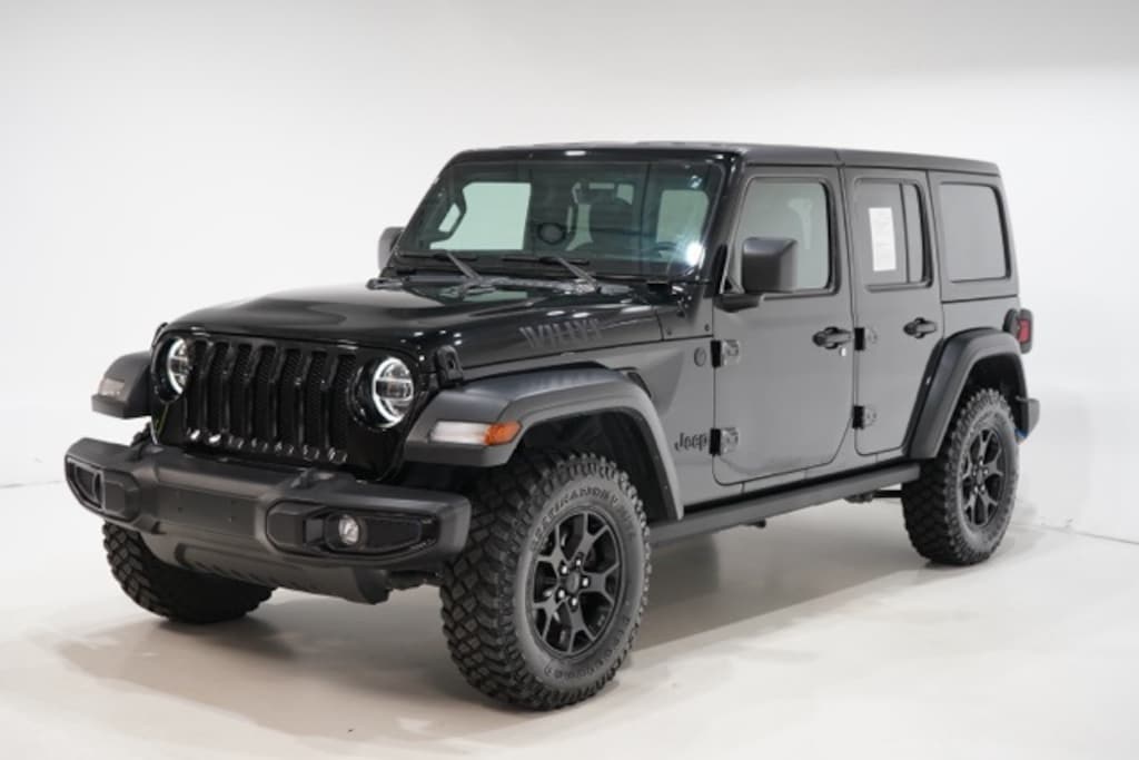 4-Wheel Drive Swing Gate Decal, 7.0" Touchscreen Display, Air Conditioning w/Auto Temperature Control, Air Filtering, Anti-Spin Differential Rear Axle, Apple CarPlay, Automatic Headlamps, Black Grille, Black Trail Rated Badge, Cluster 7.0" TFT Color Display, Deep Tint Sunscreen Windows, For More Info, Call 800-643-2112, Front 1-Touch Down Power Windows, Front LED Fog Lamps, Google Android Auto, GPS Antenna Input, Integrated Center Stack Radio, Leather Wrapped Steering Wheel, LED Headlamp & Fog Lamp Group, LED Premium Reflector Headlamps, Matte Black Jeep Badge, Mold In Color Bumper w/Gloss Black, MOPAR All-Weather Floor Mats (DISC), Power Heated Mirrors, Quick Order Package 25W Willys (DISC), Radio: Uconnect 4 w/7" Display, Remote Keyless Entry, Security Alarm, SiriusXM Radio Service, SiriusXM Satellite Radio, Speed Sensitive Power Locks, Sun Visors w/Illuminated Vanity Mirrors, Technology Group, USB Host Flip, Wheels: 17" x 7.5" Moab Black Aluminum, Willys, Willys Hood Decal, Wrangler Decal.