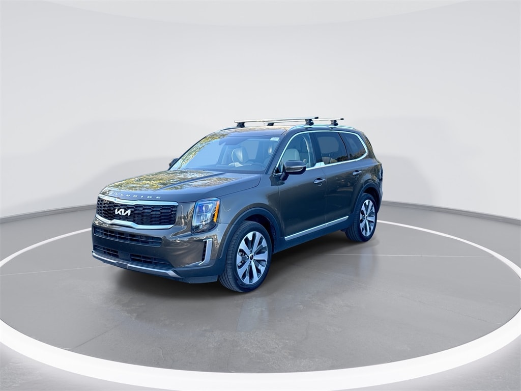 This Telluride is well equipped with EX Premium Package (20" x 7.5" Machined Alloy Wheels, 2nd Row Captain Chairs, LED Headlamps, and Satin Chrome Roof Rails), 3.648 Axle Ratio, 3rd row seats: split-bench, 4-Wheel Disc Brakes, 6 Speakers, ABS brakes, Air Conditioning, Alloy wheels, AM/FM radio: SiriusXM, Apple CarPlay & Android Auto, Auto-dimming Rear-View mirror, Automatic temperature control, Brake assist, Bumpers: body-color, Cargo Seatback Up Mat, Carpeted Floor Mats, Compass, Delay-off headlights, Driver door bin, Driver vanity mirror, Dual front impact airbags, Dual front side impact airbags, Electronic Stability Control, Emergency communication system: 911 Connect, Four wheel independent suspension, Front anti-roll bar, Front Bucket Seats, Front Center Armrest, Front dual zone A/C, Front reading lights, Fully automatic headlights, Heated & Ventilated Front Bucket Seats, Heated door mirrors, Heated front seats, Illuminated entry, Knee airbag, Leather Seat Trim, Leather Shift Knob, Leather steering wheel, Low tire pressure warning, Navigation System, Occupant sensing airbag, Outside temperature display, Overhead airbag, Overhead console, Panic alarm, Passenger door bin, Passenger vanity mirror, Power door mirrors, Power driver seat, Power Liftgate, Power moonroof, Power passenger seat, Power steering, Power windows, Radio data system, Radio: AM/FM Display Audio System, Rear air conditioning, Rear anti-roll bar, Rear audio controls, Rear reading lights, Rear seat center armrest, Rear window defroster, Rear window wiper, Reclining 3rd row seat, Remote keyless entry, Roof rack: rails only, Security system, Smart Key w/ Push Button and Remote Start, Speed control, Speed-sensing steering, Split folding rear seat, Spoiler, Steering wheel mounted audio controls, Tachometer, Telescoping steering wheel, Tilt steering wheel, Traction control, Trip computer, Turn signal indicator mirrors, Variably intermittent wipers, Ventilated front seats, and Wheels: 18" x 7.5" Machined Alloy.
