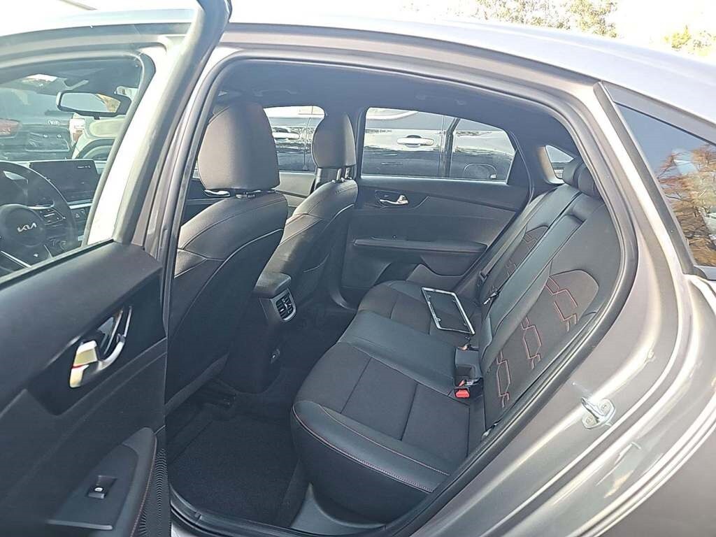 This Forte is well equipped with 18" x 7.5J Alloy Wheels, 4-Wheel Disc Brakes, 6 Speakers, ABS brakes, Air Conditioning, Alloy wheels, AM/FM radio: SiriusXM, Apple CarPlay & Android Auto, Auto High-beam Headlights, Automatic temperature control, Brake assist, Bumpers: body-color, Cargo Mat, Carpet Floor Mats, Cloth & SynTex Seat Trim, Delay-off headlights, Driver door bin, Driver vanity mirror, Dual front impact airbags, Dual front side impact airbags, Electronic Stability Control, Emergency communication system, Exterior Parking Camera Rear, Four wheel independent suspension, Front anti-roll bar, Front Bucket Seats, Front Center Armrest, Front dual zone A/C, Front fog lights, Front reading lights, Fully automatic headlights, Heated door mirrors, Illuminated entry, Leather Shift Knob, Leather steering wheel, Low tire pressure warning, Mudguards (GT-Line), Navigation System, Occupant sensing airbag, Outside temperature display, Overhead airbag, Overhead console, Panic alarm, Passenger door bin, Passenger vanity mirror, Power door mirrors, Power steering, Power windows, Radio data system, Radio: 10.25" Display Audio, Radio: harman kardon Premium Audio, Rear anti-roll bar, Rear seat center armrest, Rear window defroster, Remote keyless entry, Security system, Speed control, Split folding rear seat, Spoiler, Sport steering wheel, Steering wheel mounted audio controls, SynTex Seat Trim, Tachometer, Telescoping steering wheel, Tilt steering wheel, Traction control, Trip computer, Turn signal indicator mirrors, and Variably intermittent wipers.