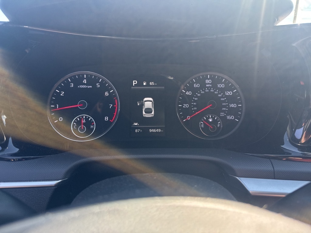 This K5 is well equipped with GT-Line Panoramic Sunroof Package (Gloss Black Pillar & Door Frame Cover, LED Interior Lighting, and Panoramic Sunroof), GT-Line Premium Package (Forward Collision Avoidance-Assist, Highway Driving Assist, LED Projection Headlamps, and Smart Cruise Control w/Stop & Go), GT-Line Red Interior Package, 4-Wheel Disc Brakes, 6 Speakers, ABS brakes, Air Conditioning, Alloy wheels, AM/FM radio: SiriusXM, Apple CarPlay & Android Auto, Auto High-beam Headlights, Automatic temperature control, Brake assist, Bumpers: body-color, Cargo Net, Carpeted Floor Mats, Cloth/SynTex Seat Trim, Delay-off headlights, Driver door bin, Driver vanity mirror, Dual front impact airbags, Dual front side impact airbags, Electronic Stability Control, Four wheel independent suspension, Front anti-roll bar, Front Bucket Seats, Front Center Armrest, Front dual zone A/C, Front fog lights, Front reading lights, Fully automatic headlights, Heated door mirrors, Heated Front Bucket Seats, Heated front seats, Heated steering wheel, Illuminated entry, Knee airbag, Low tire pressure warning, Navigation System, Occupant sensing airbag, Outside temperature display, Overhead airbag, Overhead console, Panic alarm, Passenger door bin, Passenger vanity mirror, Power door mirrors, Power driver seat, Power steering, Power windows, Radio data system, Radio: AM/FM/MP3 Audio System, Rear anti-roll bar, Rear seat center armrest, Rear side impact airbag, Rear window defroster, Remote keyless entry, Security system, Speed control, Speed-sensing steering, Split folding rear seat, Spoiler, Sport steering wheel, Steering wheel mounted audio controls, Tachometer, Telescoping steering wheel, Tilt steering wheel, Traction control, Trip computer, Turn signal indicator mirrors, Variably intermittent wipers, and Wheels: 18" Gloss Black Machined Finish Alloy.