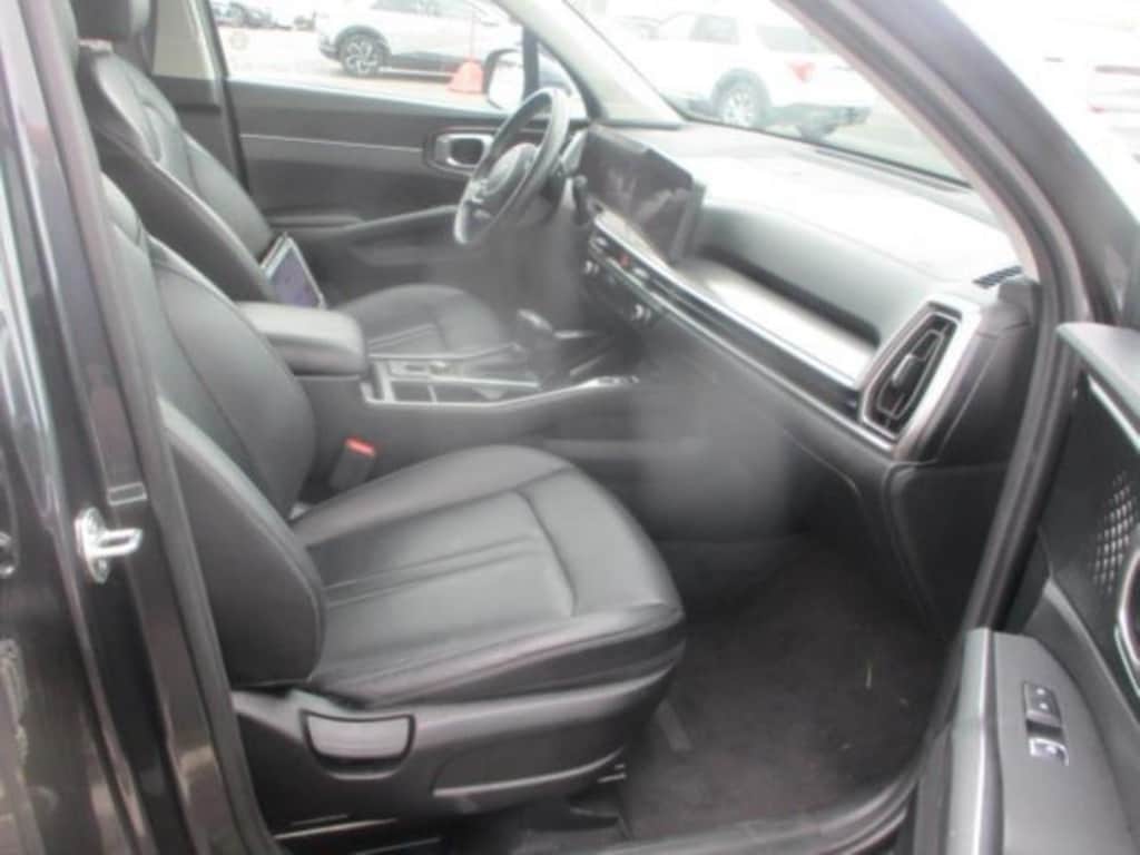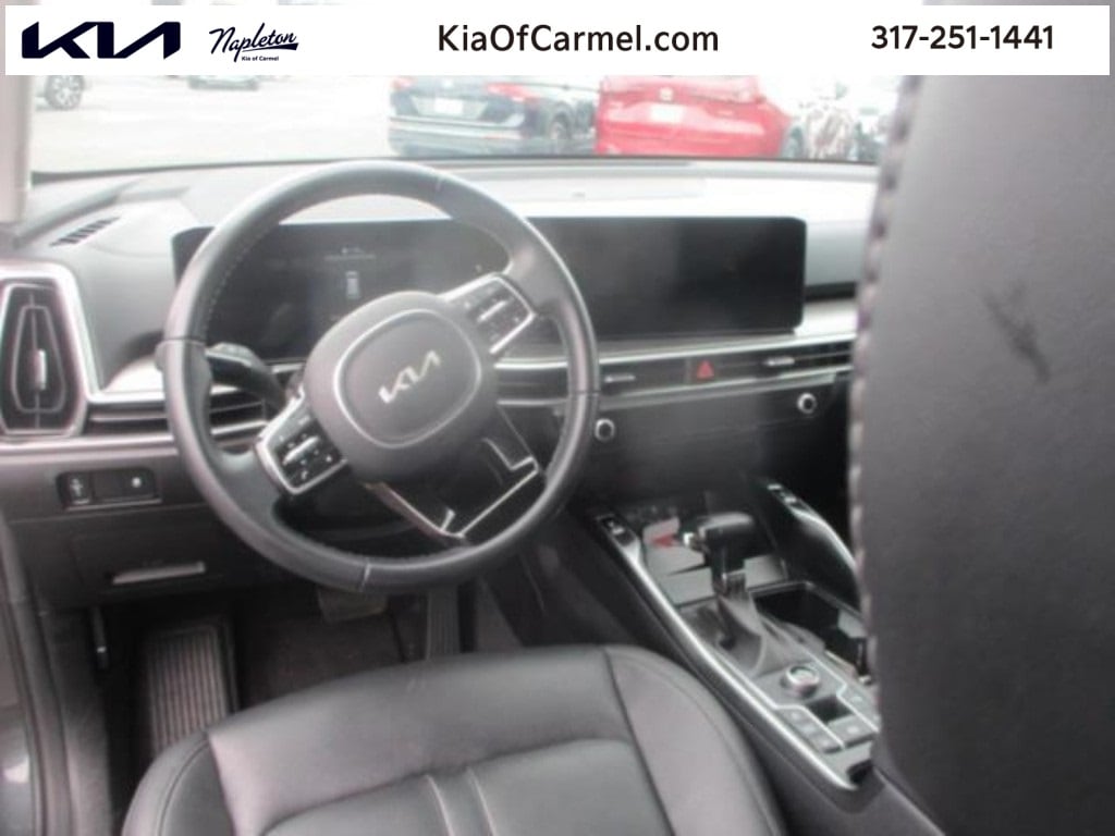 This Sorento is well equipped with AWD, 3rd row seats: split-bench, 4-Wheel Disc Brakes, 4.081 Axle Ratio, 6 Speakers, ABS brakes, Air Conditioning, Alloy wheels, AM/FM radio: SiriusXM, Apple CarPlay & Android Auto, Auto High-beam Headlights, Automatic temperature control, Brake assist, Bumpers: body-color, Carpeted Floor Mats, Delay-off headlights, Driver door bin, Driver vanity mirror, Dual front impact airbags, Dual front side impact airbags, Electronic Stability Control, Emergency communication system: 911 Connect, Exterior Parking Camera Rear, Four wheel independent suspension, Front anti-roll bar, Front Bucket Seats, Front Center Armrest, Front dual zone A/C, Front fog lights, Front reading lights, Fully automatic headlights, Heated door mirrors, Heated Front Bucket Seats, Heated front seats, Illuminated entry, Knee airbag, Leather Shift Knob, Leather steering wheel, Low tire pressure warning, Navigation System, Occupant sensing airbag, Outside temperature display, Overhead airbag, Overhead console, Panic alarm, Passenger door bin, Passenger vanity mirror, Power door mirrors, Power driver seat, Power steering, Power windows, Radio data system, Radio: AM/FM Audio System, Rear anti-roll bar, Rear reading lights, Rear seat center armrest, Rear side impact airbag, Rear window defroster, Rear window wiper, Remote keyless entry, Security system, Smart Key w/ Push Button and Remote Start, Speed control, Speed-sensing steering, Split folding rear seat, Spoiler, Steering wheel mounted audio controls, SynTex Artificial Leather Seat Trim, Tachometer, Telescoping steering wheel, Tilt steering wheel, Traction control, Trip computer, Turn signal indicator mirrors, Variably intermittent wipers, and Wheels: 7.5J x 18" Alloy w/Machine Finish.