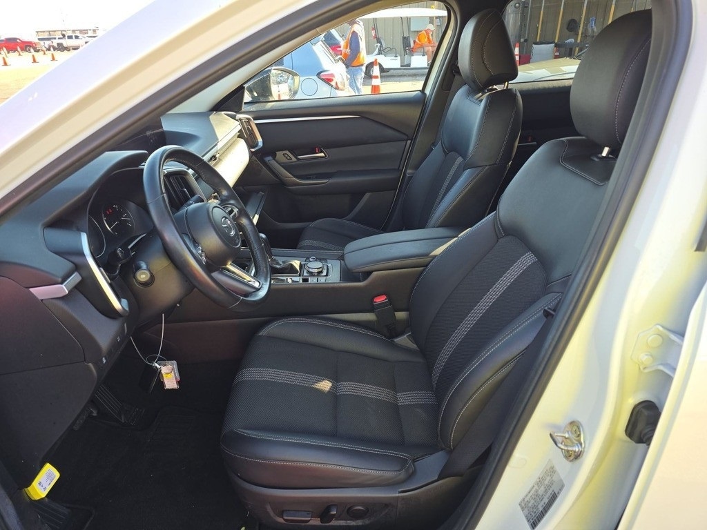 This Mazda CX-50 is well equipped with 4-Wheel Disc Brakes, 4.367 Axle Ratio, 8 Speakers, ABS brakes, Air Conditioning, Alloy wheels, AM/FM radio, AppLink/Apple CarPlay and Android Auto, Auto High-beam Headlights, Automatic temperature control, Brake assist, Bumpers: body-color, Delay-off headlights, Driver door bin, Driver vanity mirror, Dual front impact airbags, Dual front side impact airbags, Electronic Stability Control, Emergency communication system: MAZDA CONNECT, Exterior Parking Camera Rear, Front anti-roll bar, Front Bucket Seats, Front Center Armrest, Front dual zone A/C, Front reading lights, Front wheel independent suspension, Fully automatic headlights, Half Leatherette Seat Trim, Heated door mirrors, Heated Front Bucket Seats, Heated front seats, Illuminated entry, Knee airbag, Leather Shift Knob, Leather steering wheel, Low tire pressure warning, Occupant sensing airbag, Outside temperature display, Overhead airbag, Overhead console, Panic alarm, Passenger door bin, Passenger vanity mirror, Power door mirrors, Power driver seat, Power Liftgate, Power steering, Power windows, Radio data system, Radio: AM/FM/HD Audio System, Rain sensing wipers, Rear seat center armrest, Rear window defroster, Rear window wiper, Remote keyless entry, Speed control, Speed-sensing steering, Split folding rear seat, Spoiler, Steering wheel mounted audio controls, Tachometer, Telescoping steering wheel, Tilt steering wheel, Traction control, Trip computer, Turn signal indicator mirrors, Variably intermittent wipers, Wheels: 17" x 7J Aluminum Alloy, and Wind Chill Pearl Paint Charge.