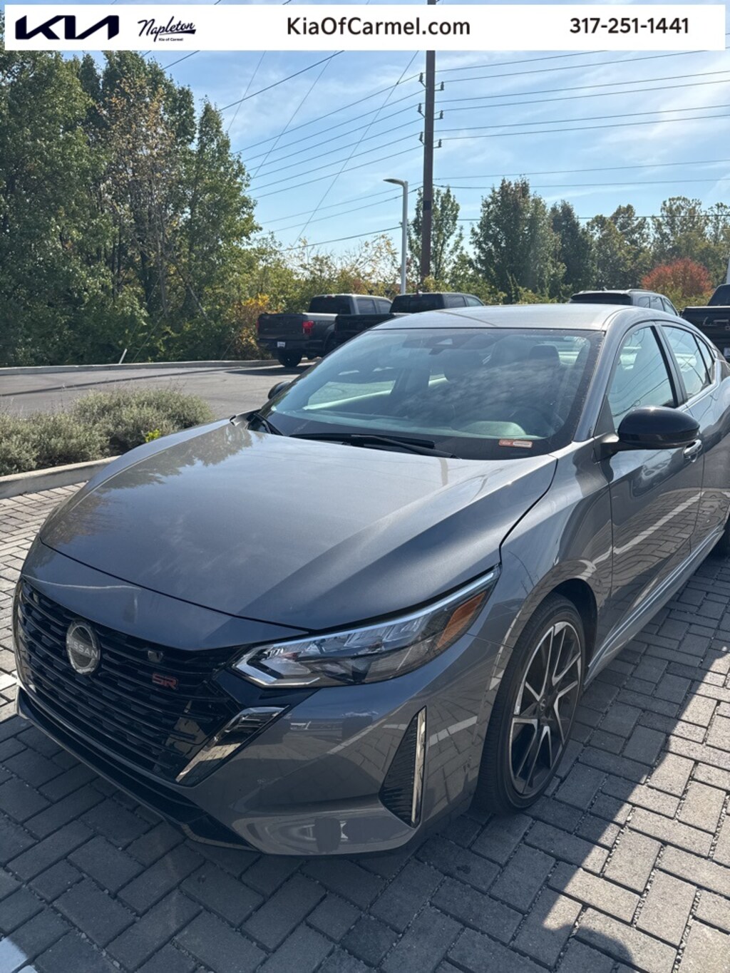 This Sentra is well equipped with CVT with Xtronic, Sport Cloth, 18" Alloy Wheels, 4-Wheel Disc Brakes, 6 Speakers, ABS brakes, Air Conditioning, Alloy wheels, AM/FM radio: SiriusXM, Auto High-beam Headlights, Automatic temperature control, Blind Spot Warning, Brake assist, Bumpers: body-color, Carpeted Floor Mats w/Trunk Mat, Clear Rear Bumper Protector, Delay-off headlights, Door Sill Plates, Driver door bin, Driver vanity mirror, Dual front impact airbags, Dual front side impact airbags, Electronic Stability Control, Four wheel independent suspension, Front anti-roll bar, Front Bucket Seats, Front Center Armrest, Front dual zone A/C, Front reading lights, Fully automatic headlights, Heated door mirrors, Heated Front Bucket Seats, Heated front seats, Illuminated entry, Knee airbag, Leather Shift Knob, Leather steering wheel, Low tire pressure warning, NissanConnect featuring Apple CarPlay and Android Auto, Occupant sensing airbag, Outside temperature display, Overhead airbag, Overhead console, Panic alarm, Passenger door bin, Passenger vanity mirror, Power door mirrors, Power steering, Power windows, Radio data system, Radio: AM/FM w/RDS/MP3/Aux-In, Rear anti-roll bar, Rear Parking Sensors, Rear seat center armrest, Rear side impact airbag, Rear window defroster, Remote keyless entry, Security system, Speed control, Speed-sensing steering, Split folding rear seat, Spoiler, Sport Cloth Seat Trim, Steering wheel mounted audio controls, Tachometer, Telescoping steering wheel, Tilt steering wheel, Traction control, Trip computer, Turn signal indicator mirrors, and Variably intermittent wipers.