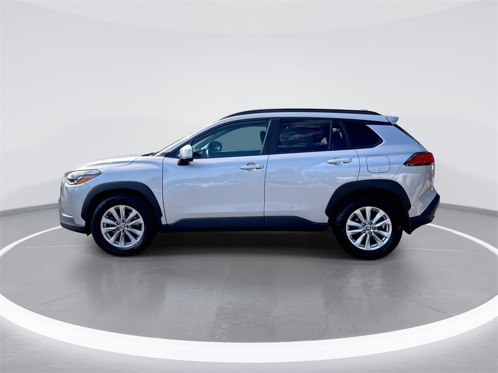 This Corolla Cross is well equipped with 17" Alloy Wheels, 4-Wheel Disc Brakes, 4.014 Axle Ratio, 6 Speakers, ABS brakes, Air Conditioning, Alloy wheels, AM/FM radio: SiriusXM, Apple CarPlay/Android Auto, Auto High-beam Headlights, Automatic temperature control, Brake assist, Bumpers: body-color, Delay-off headlights, Driver door bin, Driver vanity mirror, Dual front impact airbags, Dual front side impact airbags, Electronic Stability Control, Emergency communication system: Safety Connect with 1-year trial, Exterior Parking Camera Rear, Fabric Seat Trim, Four wheel independent suspension, Front anti-roll bar, Front Bucket Seats, Front Center Armrest, Front reading lights, Fully automatic headlights, Heated door mirrors, Illuminated entry, Knee airbag, Leather steering wheel, Low tire pressure warning, Occupant sensing airbag, Outside temperature display, Overhead airbag, Panic alarm, Passenger door bin, Passenger vanity mirror, Power door mirrors, Power steering, Power windows, Radio data system, Radio: 6 Speaker Audio, Rear anti-roll bar, Rear side impact airbag, Rear window defroster, Rear window wiper, Remote keyless entry, Roof rack: rails only, Security system, Speed control, Split folding rear seat, Spoiler, Steering wheel mounted audio controls, Tachometer, Telescoping steering wheel, Tilt steering wheel, Traction control, Trip computer, Turn signal indicator mirrors, and Variably intermittent wipers.