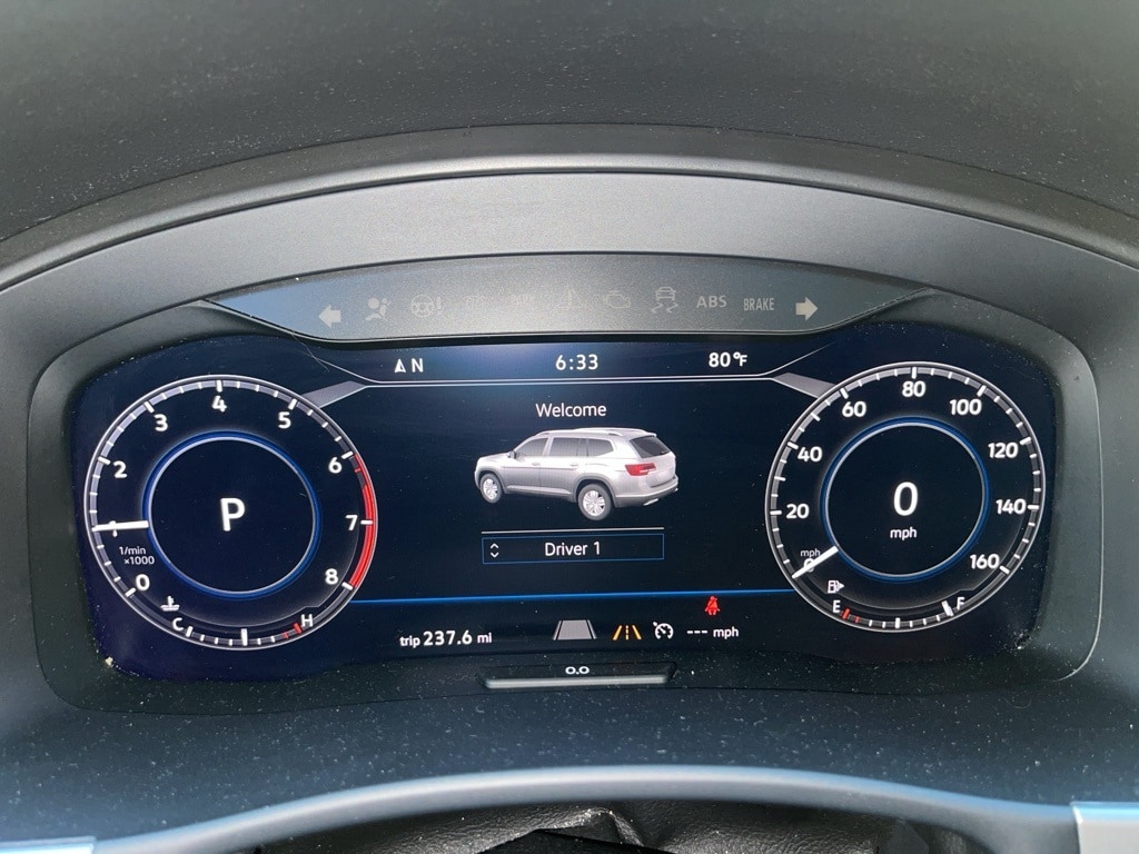 This Atlas is well equipped with 20" Black Wheels (Wheels: 20" Mejorada Black Alloy), 2nd-Row Dual Captain Chairs Package (2nd Row Captain's Chairs), 12 Speakers, 3.60 Axle Ratio, 3rd row seats: split-bench, 4-Wheel Disc Brakes, ABS brakes, Air Conditioning, Alloy wheels, AM/FM radio: SiriusXM, Auto High-beam Headlights, Auto-dimming Rear-View mirror, Automatic temperature control, Brake assist, Bumpers: body-color, Compass, Delay-off headlights, Driver door bin, Driver vanity mirror, Dual front impact airbags, Dual front side impact airbags, Electronic Stability Control, Emergency communication system: VW Car-Net, Four wheel independent suspension, Front anti-roll bar, Front Bucket Seats, Front Center Armrest, Front dual zone A/C, Front fog lights, Front reading lights, Garage door transmitter: HomeLink, Heated door mirrors, Heated front seats, Heated rear seats, Heated steering wheel, Heated/Ventilated Front Bucket Seats, Heavy Duty Trunk Liner w/VW CarGo Blocks, Illuminated entry, Low tire pressure warning, Memory seat, Navigation System, Occupant sensing airbag, Outside temperature display, Overhead airbag, Overhead console, Panic alarm, Passenger door bin, Passenger vanity mirror, Perforated Vienna Leather Seating Surfaces, Power door mirrors, Power driver seat, Power Liftgate, Power moonroof, Power passenger seat, Power steering, Power windows, Radio data system, Radio: Discover Media 8.0" Touchscreen w/CD/Nav, Rain sensing wipers, Rear air conditioning, Rear anti-roll bar, Rear audio controls, Rear reading lights, Rear seat center armrest, Rear window defroster, Rear window wiper, Remote CD player, Remote keyless entry, Roadside Assistance Kit, Roof rack: rails only, Rubber Mats Kit - Bench Seats, Security system, Speed control, Speed-sensing steering, Split folding rear seat, Spoiler, Standard Suspension, Steering wheel mounted audio controls, Tachometer, Telescoping steering wheel, Tilt steering wheel, Traction control, Trip computer, Turn signal indicator mirrors, Variably intermittent wipers, Ventilated front seats, and Wheels: 20" Mejorada Alloy.